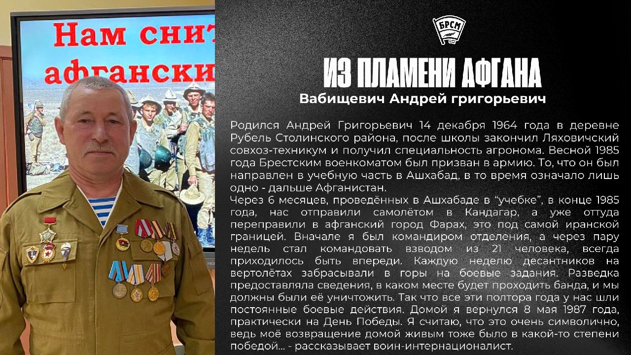 - Из Беларуси я был один, в основном у нас служили узбеки, казахи, азербайджанцы, россияне, было два украинца. Сразу после увольнения мы, четверо товарищей, поехали в Узбекистан, посетили могилу друзей, которые с нами служили и погибли. Два дня мы погостили дома у своего товарища, а затем его отец отвёз нас в Ленинабад, посадил на самолёт и мы прилетели в Москву, - вспоминал Вабищевич Андрей Григорьевич.