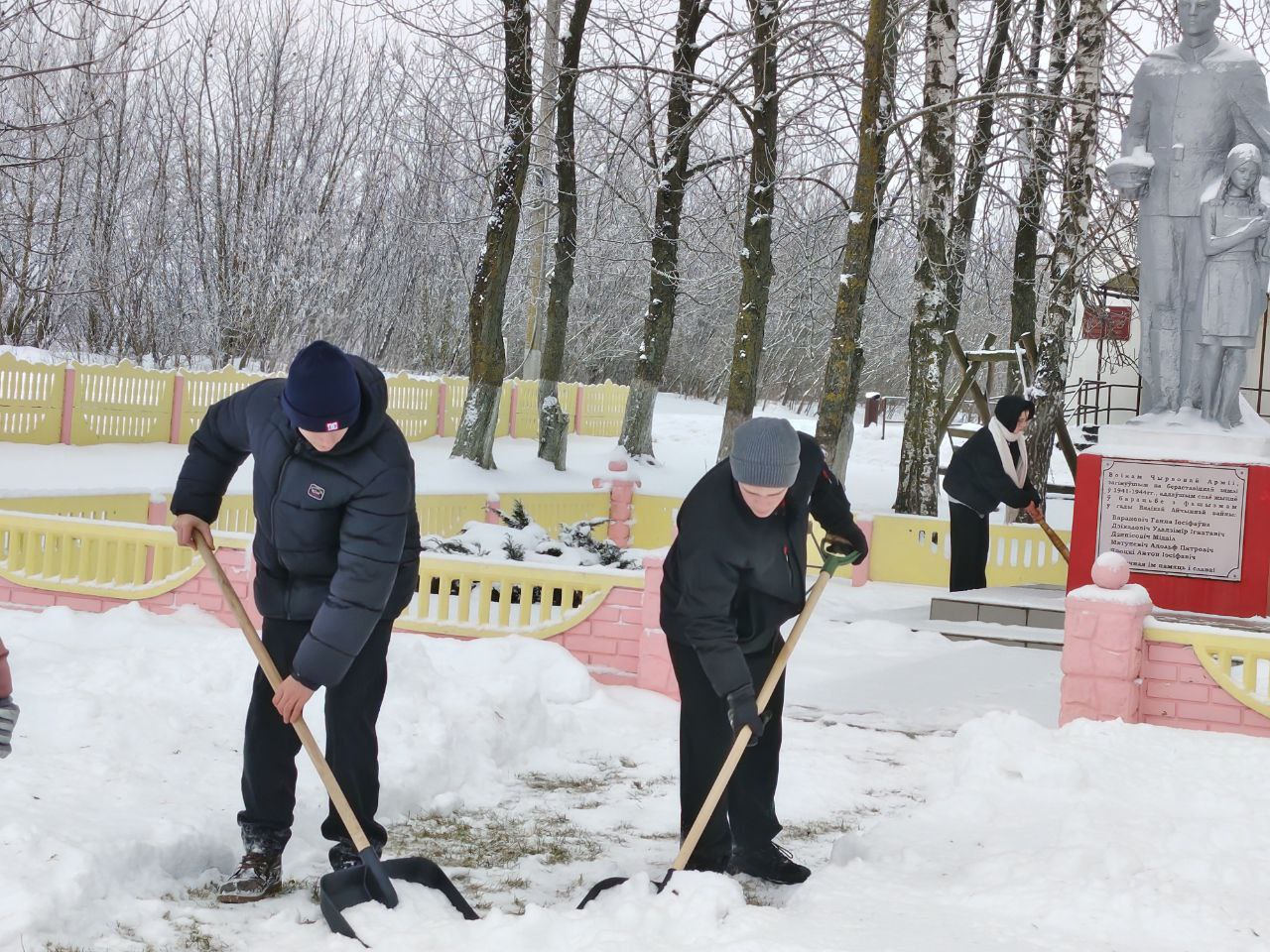 В рамках акции «Зимняя пора добрых дел» ребята с большим энтузиазмом взялись за уборку снега. Они очистили территорию у памятника погибшим землякам в годы Великой Отечественной войны в аг. Макаровцы.